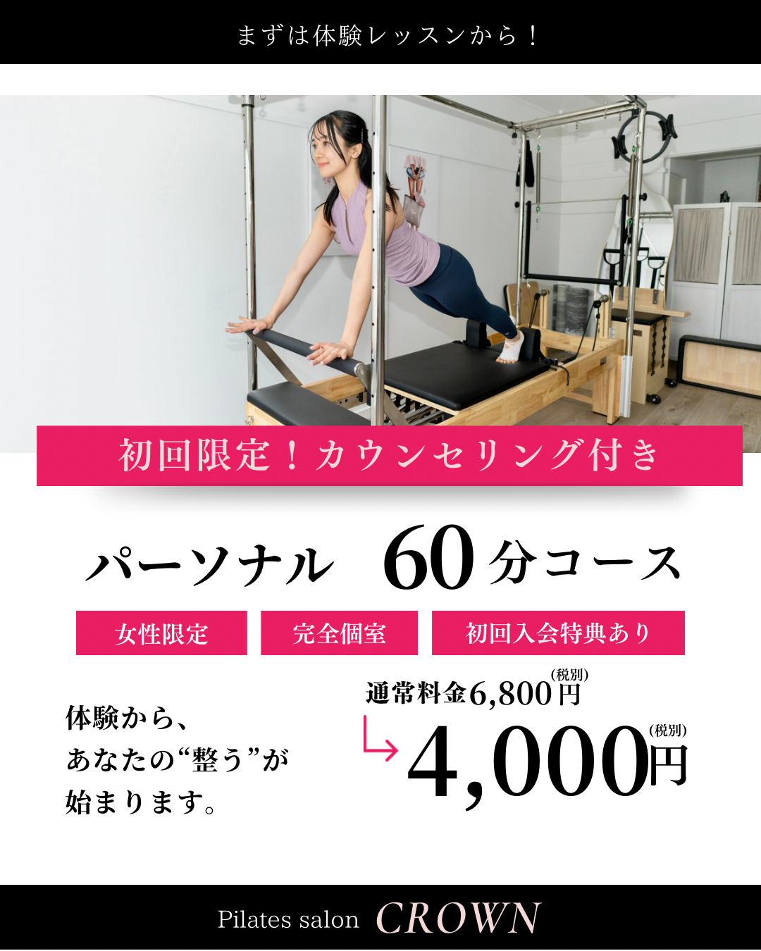 - 【期間限定】原宿の完全個室 ピラティス サロンで、モニターキャンペーン募集中!|Pilates salon CROWN原宿駅から徒歩2分、完全プライベート空間で本格的な骨格アプローチが受けられる「Pilates salon CR… 続きを読む: 【期間限定】原宿の完全個室 ピラティス サロンで、モニターキャンペーン募集中!|Pilates salon CROWN